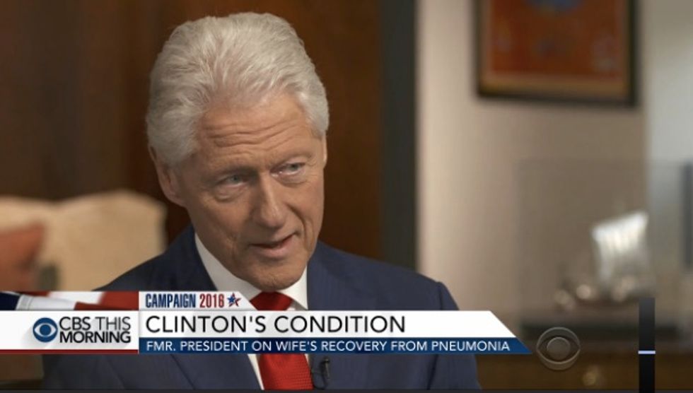 During the former president's Monday interview with Charlie Rose, Clinton addressed his wife's collapse while she was leaving a 9/11 memorial as well as her diagnosis of pneumonia and dehydration. In the version of the interview that aired, Clinton said, "Rarely, but on more than one occasion over the last many, many years, the same sort of thing has happened to her when she just got severely dehydrated."