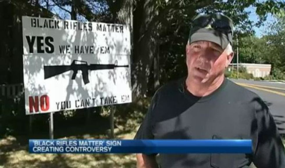 While Sample told the station that his sign addresses only gun rights, others took offense at his play on Black Lives Matter.