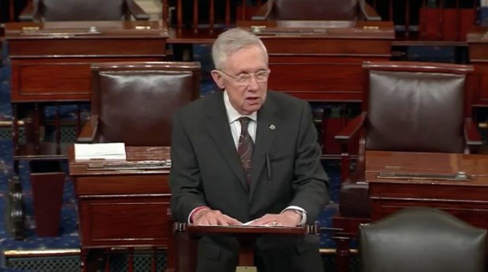 Senate Minority Leader Harry Reid (D-Nev.) took to the Senate floor Thursday to call Republican presidential nominee Donald Trump a “notorious con artist” and a “human leech who will bleed the country.”