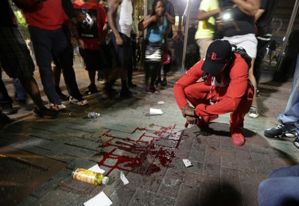 Immediately after the shooting, police began firing flash grenades and protesters threw fireworks. Police then fired tear gas, and the crowd of hundreds dispersed.