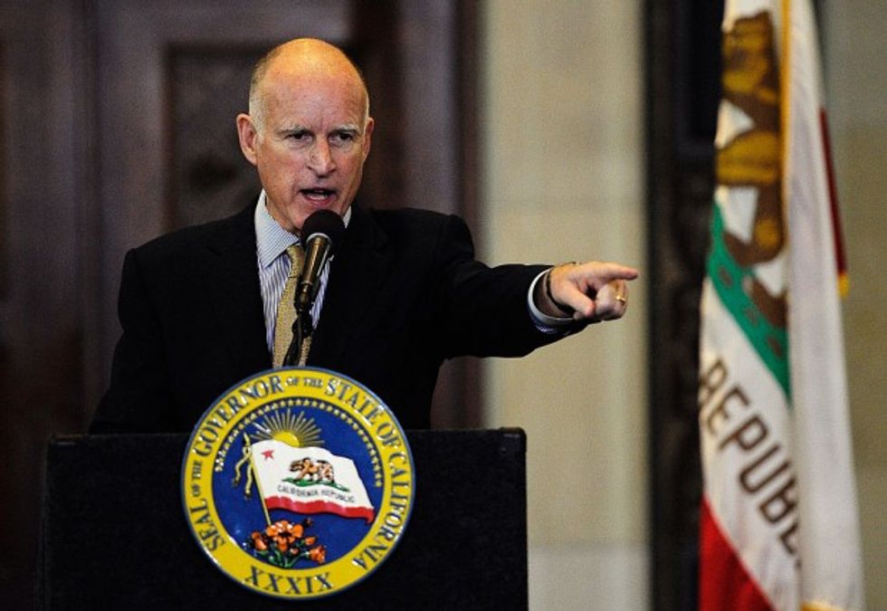 California Gov. Jerry Brown (D) speaks at Los Angeles City Hall on January 18, 2012 in Los Angeles, California. (Kevork Djansezian/Getty Images)