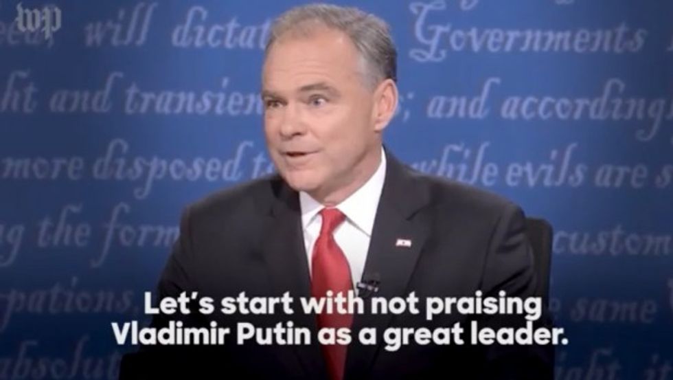 “He’s asking everybody to vote for somebody that he cannot defend,” Kaine is heard saying at the end of the ad.