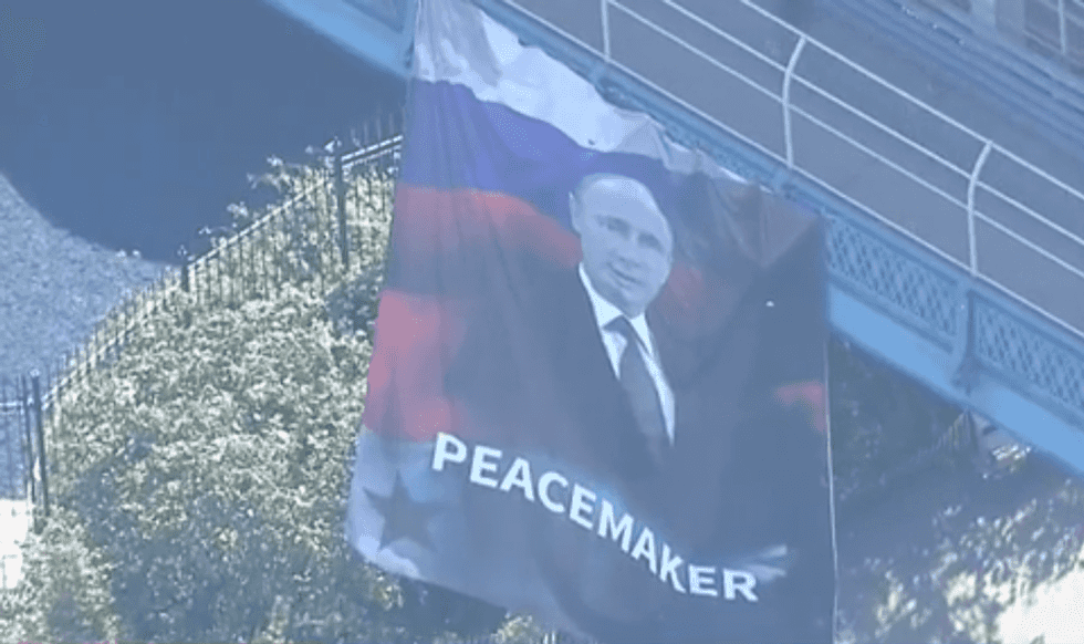 Huge banner praising Putin as a 'peacemaker' appears on Manhattan Bridge