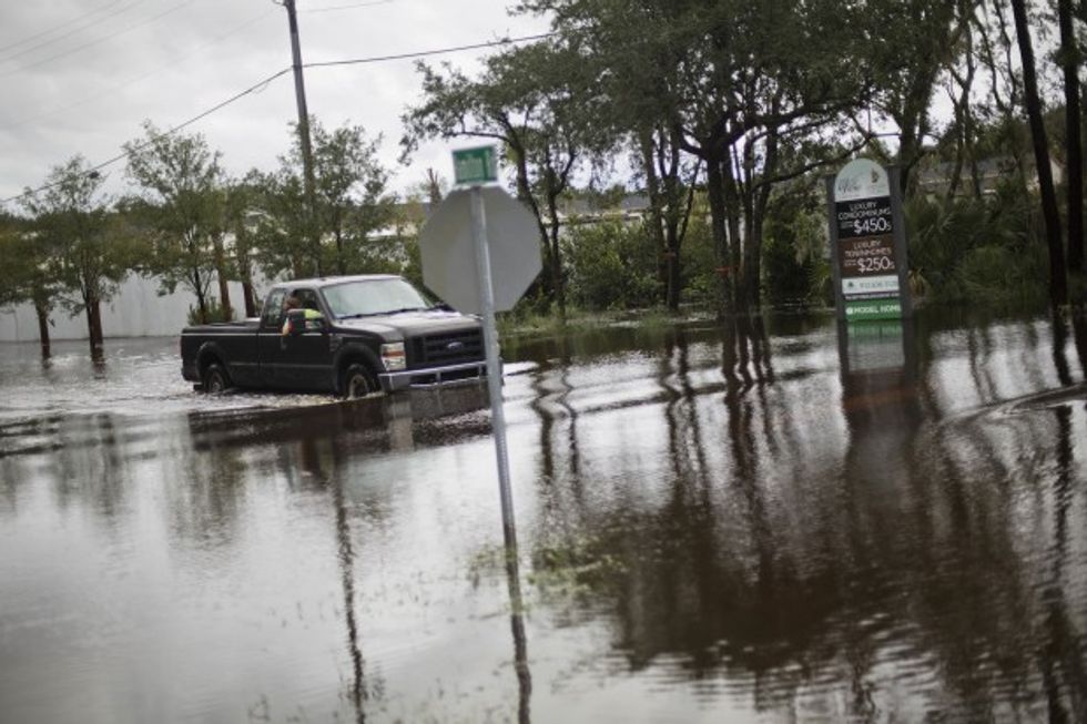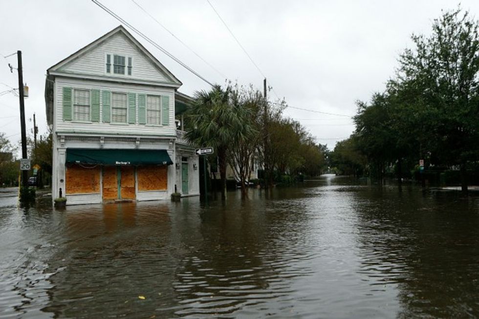 Water floods the streets on and around Broad Street in the wake of Hurricane Matthew in Charleston on Saturday. (Getty Images/Brian Blanco)