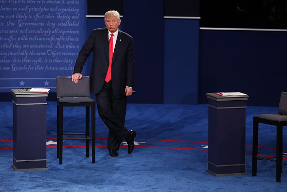 Donald Trump on stage during the second debate between the Republican and Democratic presidential candidates on Sunday, Oct. 9, 2016 at Washington University in St. Louis, Mo. (Christian Gooden/St. Louis Post-Dispatch/TNS via Getty Images)