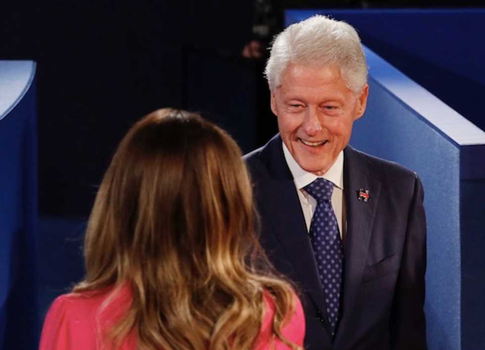 As Donald Trump detailed the consequences of former President Bill Clinton's sexual scandals, a television camera caught Bill Clinton's facial expression from the audience during Sunday night's debate.
