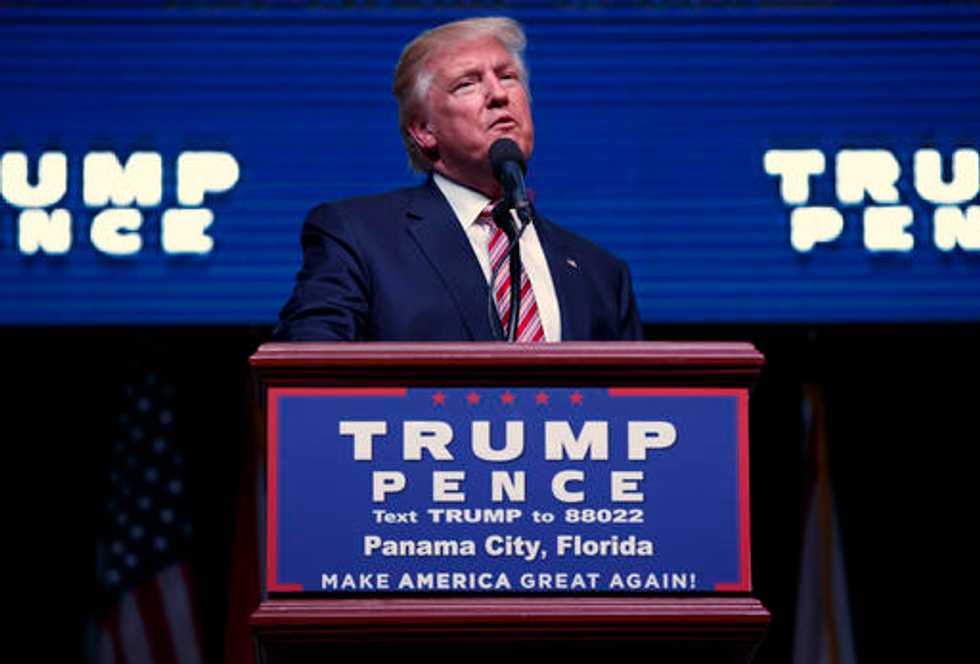Republican presidential candidate Donald Trump speaks during a campaign rally, Tuesday, Oct. 11, 2016, in Panama City, Fla. (AP Photo/ Evan Vucci)
