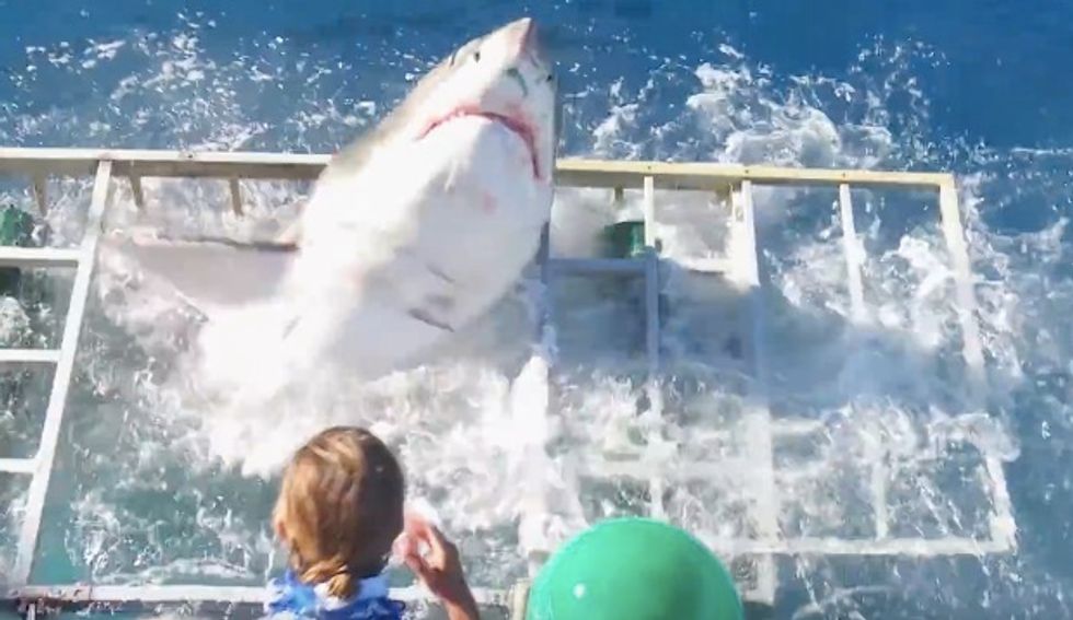 If you've ever dreamed about climbing into one of those "shark-proof" cages to see a great white shark up close and personal, this video might have you rethinking your dream.