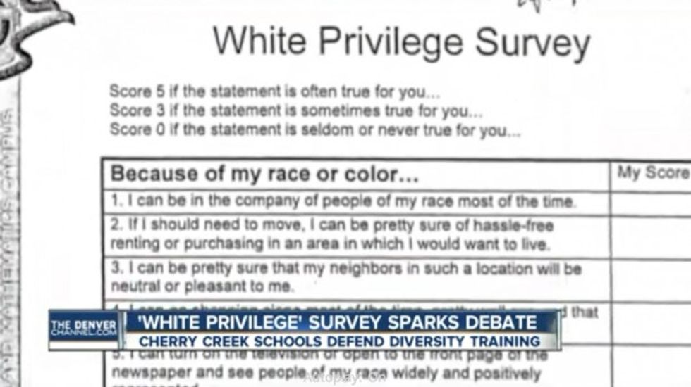 The survey, which was distributed to Cherry Creek School District employees, asked employees to rate themselves on 26 statements such as, "Because of my race or color… I can comfortably avoid, ignore or minimize the impact of racism on my life," and "I can go into any hairdresser’s shop and find someone who can cut my hair."