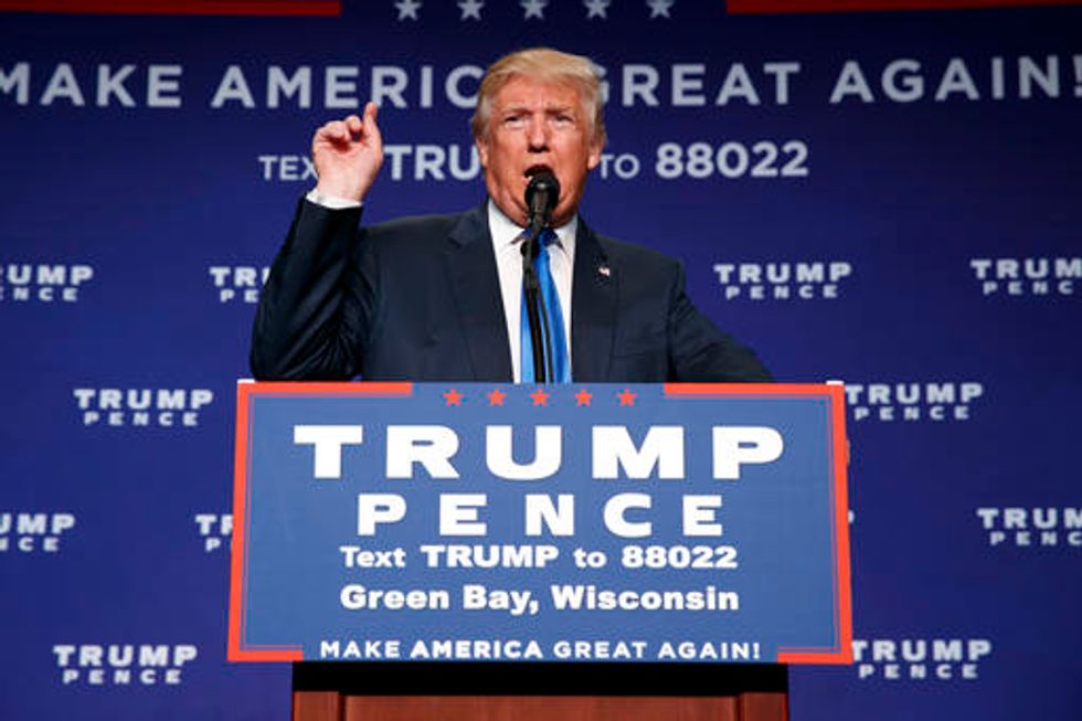 Republican presidential candidate Donald Trump speaks during a campaign rally, Monday, Oct. 17, 2016, in Green Bay, Wis. (AP Photo/ Evan Vucci)