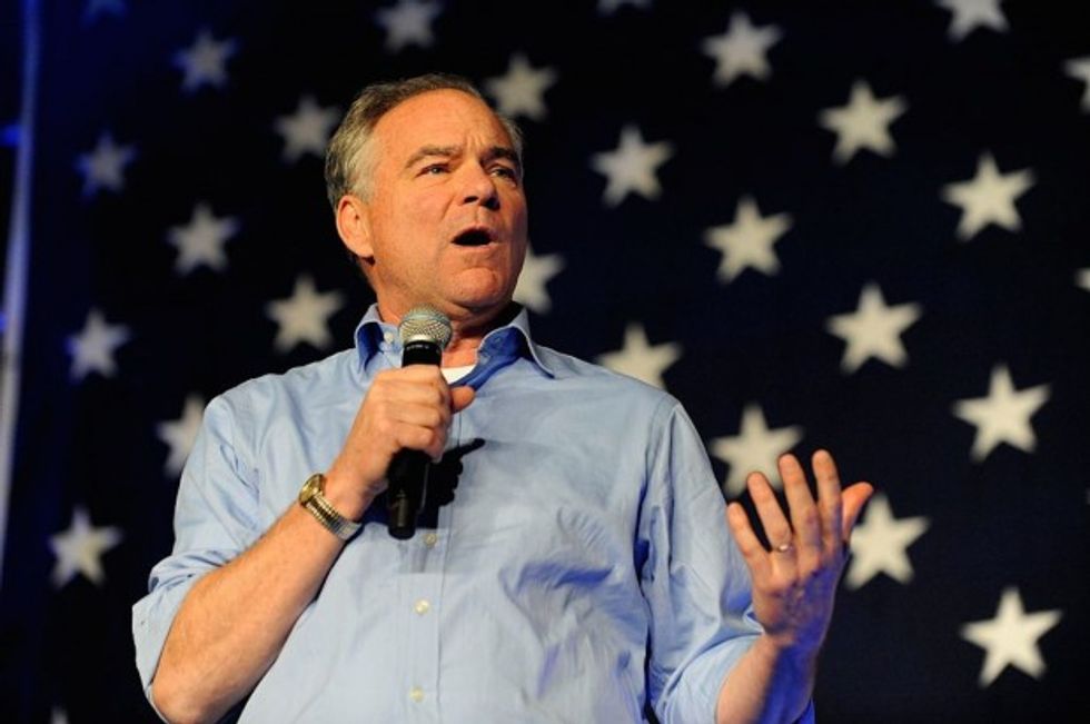 Democratic vice presidential nominee Sen. Tim Kaine addresses supporters during a Get Out The Vote Concert campaign rally at the National Western Complex in Denver, Colorado on October 10, 2016. (Jason Connolly/AFP/Getty Images)