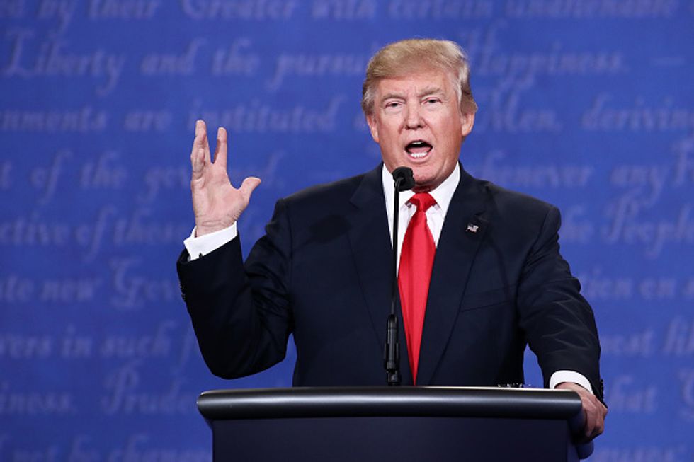 Republican presidential nominee Donald Trump debates with Democratic presidential nominee Hillary Clinton during the third presidential debate at UNLV in Las Vegas, Wednesday, Oct. 19, 2016. (Mark Ralston/Pool via AP)