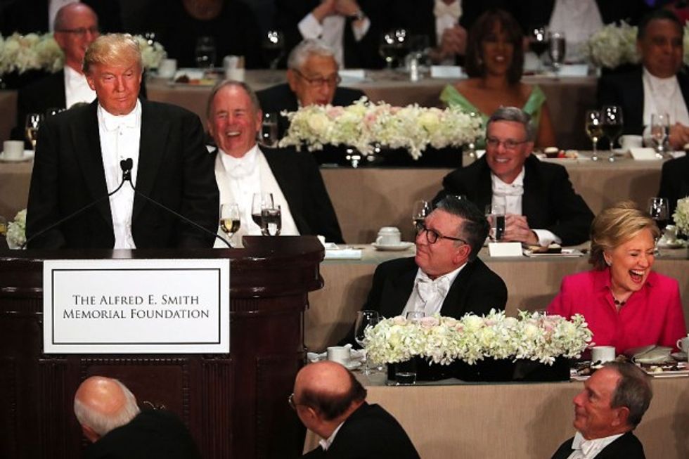 Donald Trump started out fine at Thursday night's Alfred E. Smith Foundation Dinner, lobbing light-hearted jabs at Hillary Clinton and recalling the times he attended the event with his father, but his speech took a painful turn when he tore into his presidential rival.