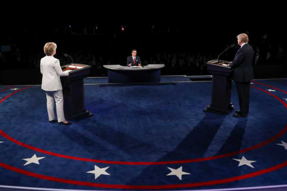 Democratic presidential nominee Hillary Clinton debates Republican presidential nominee Donald Trump at UNLV in Las Vegas on Wednesday. (AP Photo/John Locher)