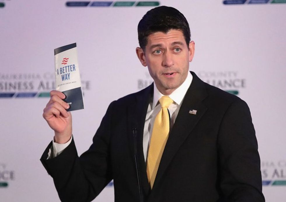 Speaker of the House Paul Ryan speaks with business and community leaders at the Waukesha County Business Alliance luncheon on October 13, 2016 in Brookfield, Wisconsin. (Scott Olson/Getty Images)