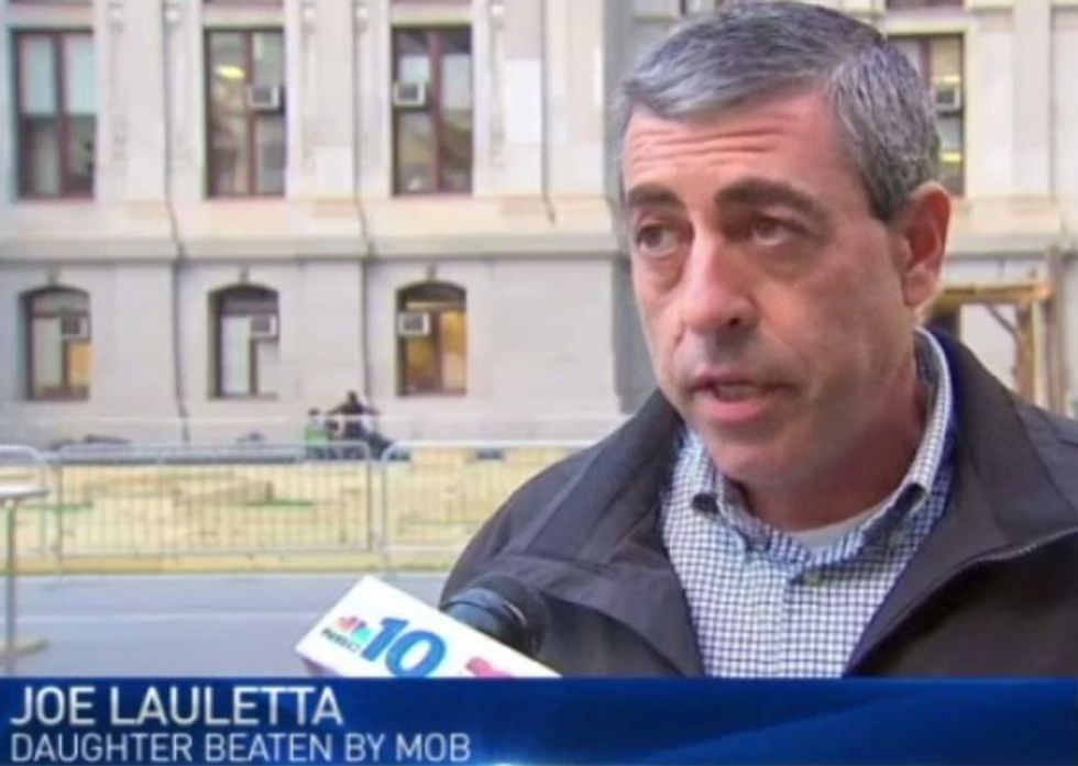 Joe Lauletta, the father of an apparent victim who ended up in the hospital, wrote on Facebook that his daughter's attacker "held her down and kicked and stomped on her repeatedly," and he called the mob "sick animals."