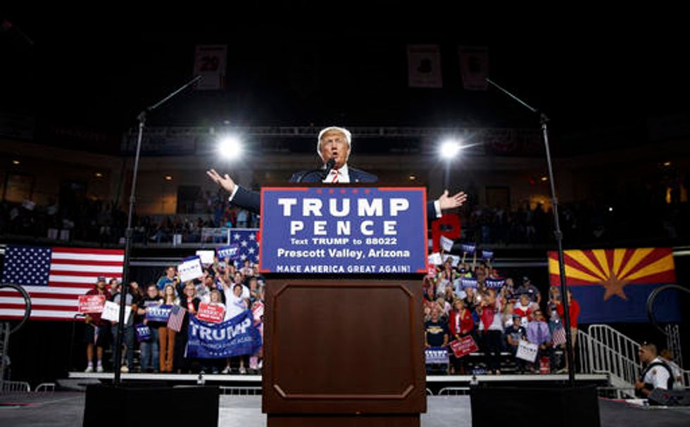Donald Trump speaks during a campaign rally Oct. 4 in Prescott Valley, Ariz. (AP/Evan Vucci)