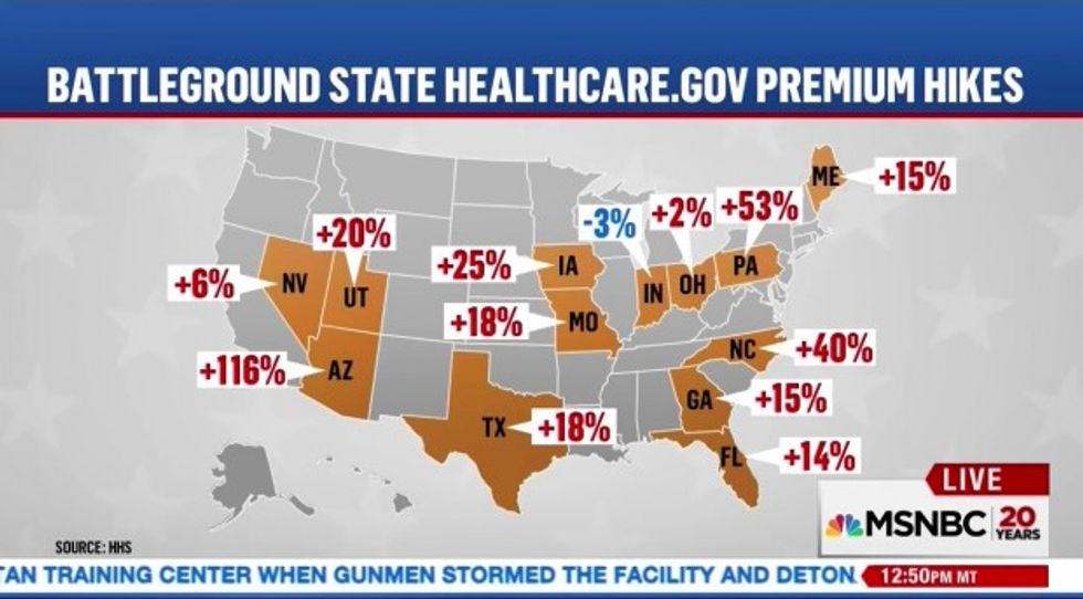 That's only a national average, however, as many states could see their premiums more than double. In the case of one state, Arizona, some residents are looking at potential premium hikes of more than 116 percent.