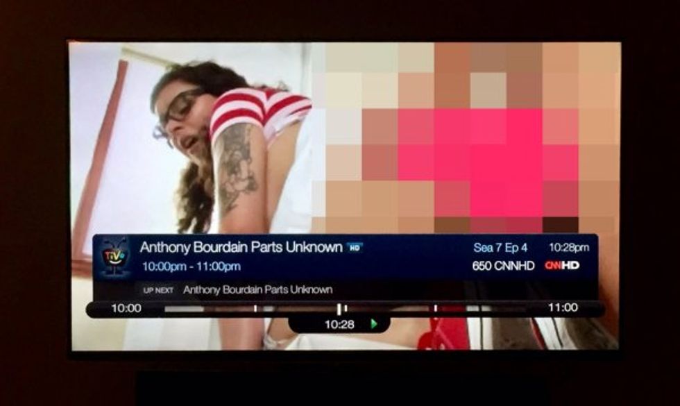 The news story goes that viewers who tuned in did not find Bourdain showcasing different cultures, but instead found themselves watching 30 minutes of uninterrupted hardcore pornography starring a transexual pornstar at 11 pm eastern time. The incident itself was allegedly limited to the Boston area only.