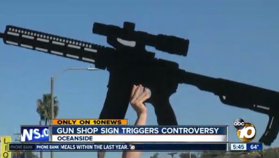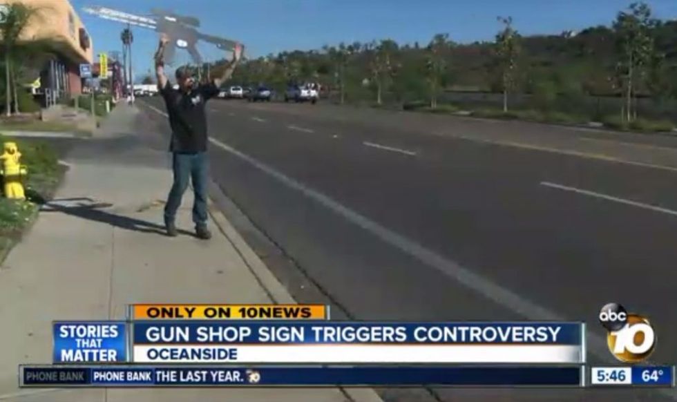 To attract business to the gun parts store on the biggest shopping day of the year, he decided to head out the door of the Oceanside, California, establishment and do that whole sidewalk sign-waving routine as cars drive by.