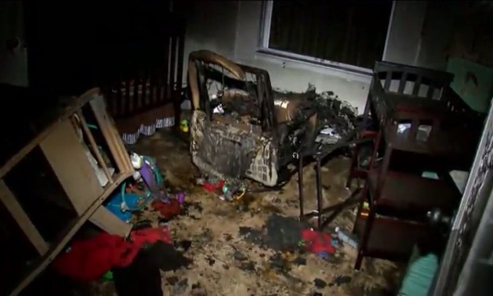His 8-year-old daughter’s bed and his 18-month-old son's crib were burned to crisps —