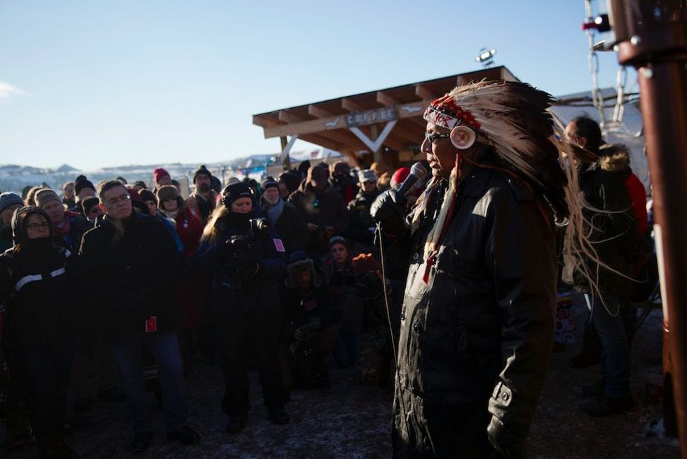 Steven Perry, a 66-year-old Vietnam veteran who's a member of the Little Traverse Bay band of Odawa Indians in Michigan, spoke of one of the protesters' main concerns: that the pipeline could pollute drinking water. "This is not just a native issue," he said, "This is an issue for everyone."