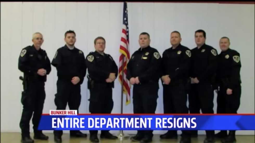 The entire police force in the small Indiana town of Bunker Hill walked off the job Monday evening, citing major problems with the town council.