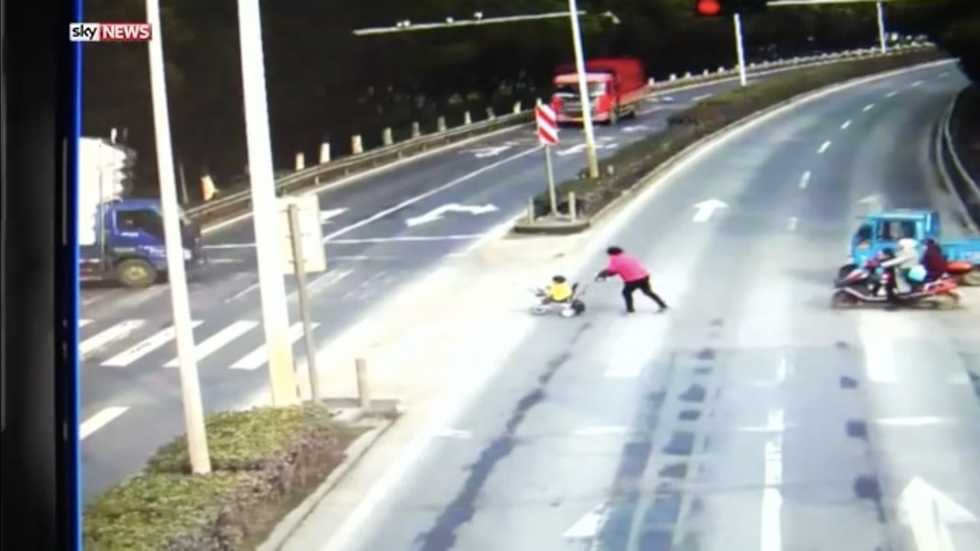 After the child was pulled from under the truck and handed to his grandmother, she could be seen swatting her hands at the driver, who was reportedly fined 150 yuan, or approximately $21.60, for failure to stop at a red light.