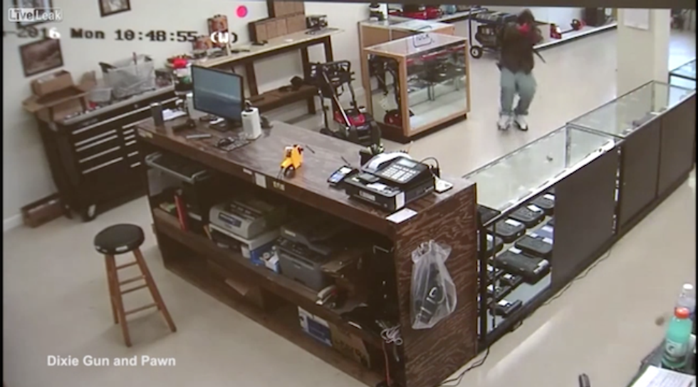 In December, TheBlaze reported a story about a Cobb County gun store owner who stopped an attempted armed robbery after he opened fire on the two individuals attempting to rob him, his customers, and his store. But now video footage of the heroic actions of this Georgia store owner has surfaced, showing the situation as it went down.