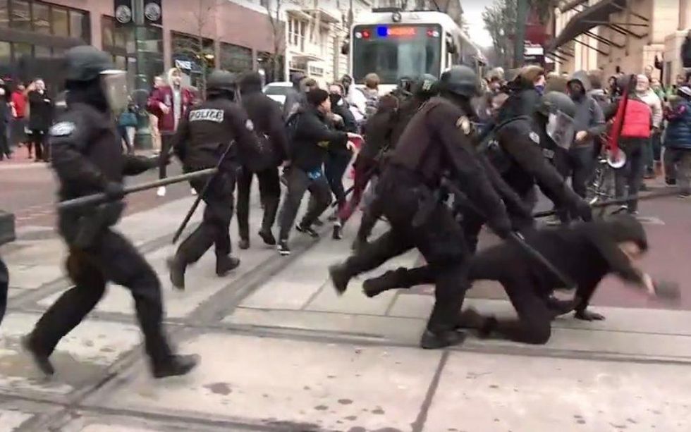 But when Trump took office last Friday, things didn't go as smoothly for protesters as Portland cops used pepper spray and tear gas on them, KPTV-TV reported.
