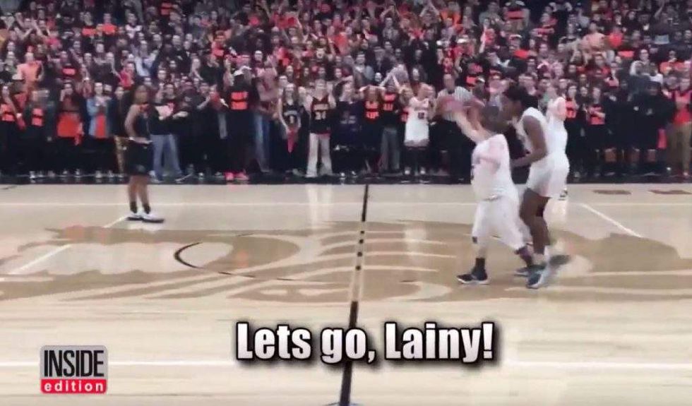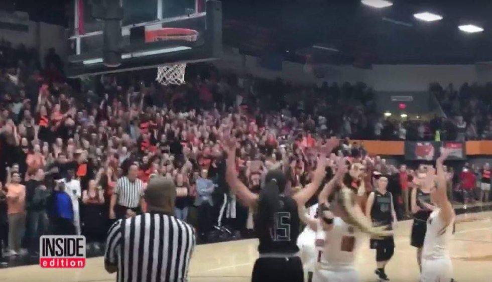 “We got her in her spot that we practice in every single day at practice,” Franks told the Oklahoman. “It took a few tries, but she got it down. I just think the people cheering for her, and that kind of sportsmanship in the gym ... that's extraordinary.”