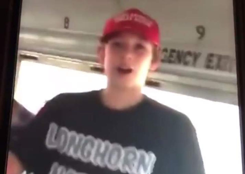 Following the scuffle, the same voice from the beginning of the incident is heard laughing and saying, "I wanted you guys to fight ..." The boy wearing the Trump cap responds that he was pushed first.