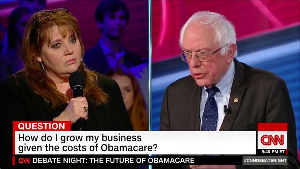 When one small business owner told Sen. Bernie Sanders (I-Vt.) during a CNN health care debate earlier this week that Obamacare has been hurting her business, she got a stern talking to from the self-avowed socialist lawmaker.