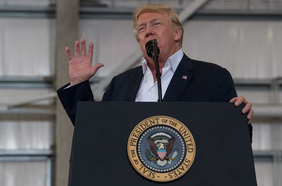US President Donald Trump addresses a rally at the Orlando Melbourne International Airport on February 18, 2017 in Melbourne, Florida. / AFP / NICHOLAS KAMM (Photo credit should read NICHOLAS KAMM/AFP/Getty Images)