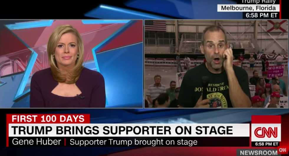 Gene Huber told CNN after the impromptu moment with the president that he has been supporting Trump for the last two years and is completely devoted to him. Huber said he lined up to get into the Melbourne rally at 4 a.m. Saturday, and because he was the first in line, he was interviewed by several local media outlets, which led to Trump seeing Huber's loyalty on TV.