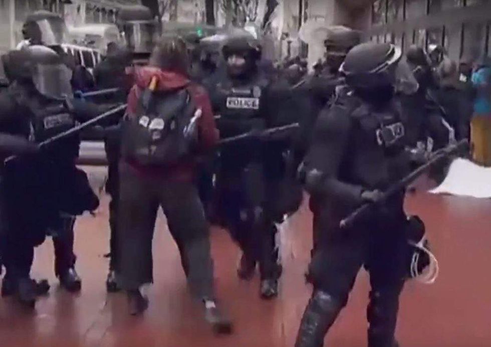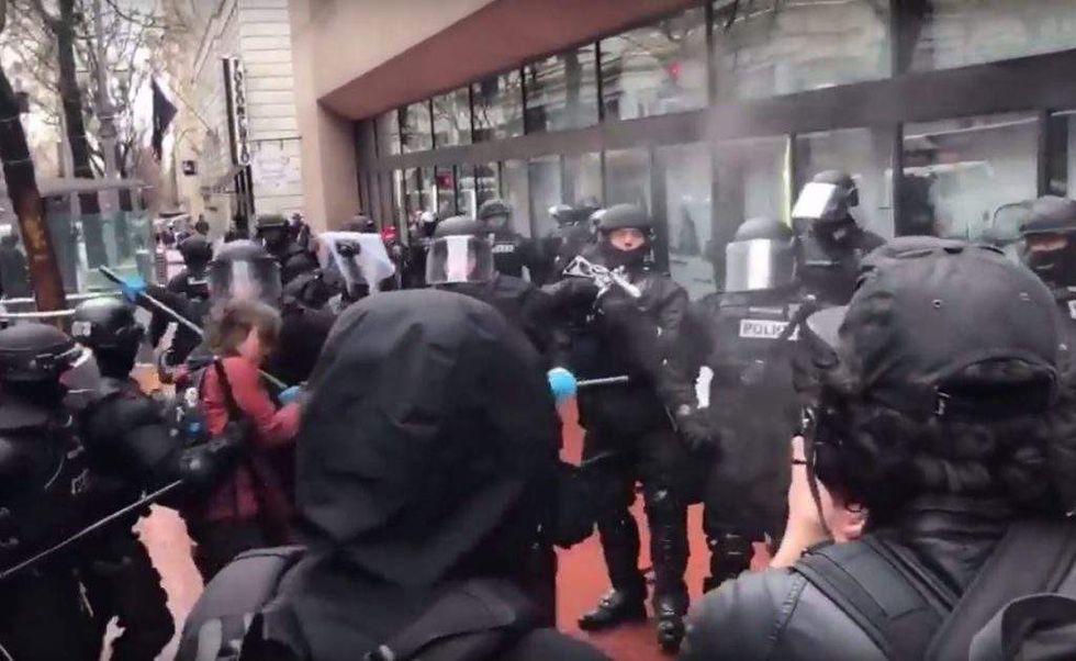 Police used used "limited deployment" of pepper spray and non-lethal shots during the protests, the Oregonian said — and the latter was on full display during one jaw-dropping confrontation.