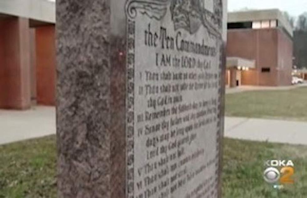 The Ten Commandments monument has stood at the school since 1957, KDKA reported. A local Fraternal Order of the Eagles branch gave it to the district following the 1956 release of the movie “The Ten Commandments," TribLive said.