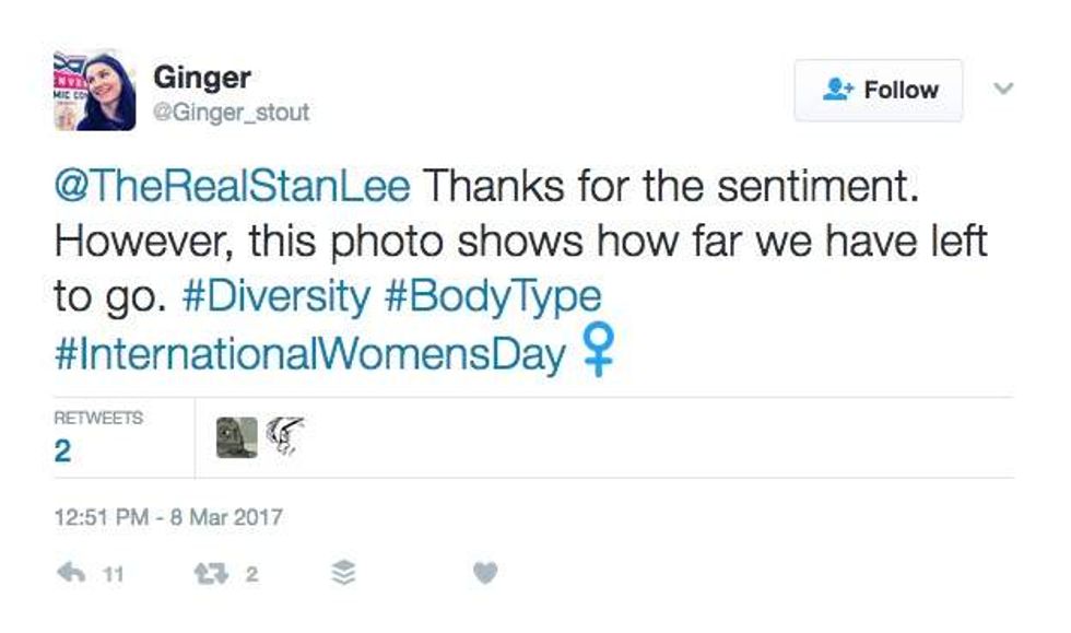 To mark International Women's Day on Wednesday, the 94-year-old Marvel Comics icon took to Twitter and gave a shout-out using artwork featuring "The Superhero Women."