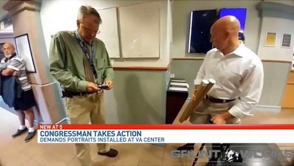 Seems Mast's actions were “inappropriate,” a VA spokeswoman told WPEC, and the portraits were removed because they haven't been authenticated and need to originate from the central office.