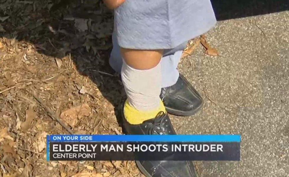 One suspect fell, and the other ran off with the victim chasing him out of the house, AL.com reported. As the second suspect ran across the yard, he shot the homeowner in the leg, entered a getaway car driven by a third suspect, and the pair escaped, the outlet said.
