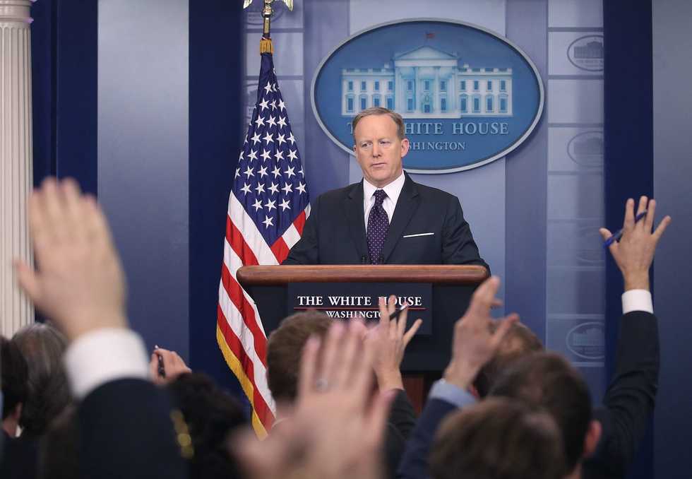 White House Press Secretary Sean Spicer speaks to the media Wednesday during his daily briefing at the White House in Washington, D.C. (Mark Wilson/Getty Images)