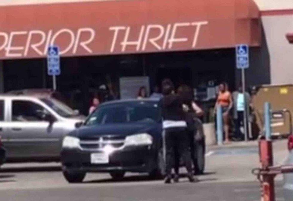 Two women got into a brawl in a thrift store parking lot in Stockton, Calif. (Image source: KTXL-TV screen cap)