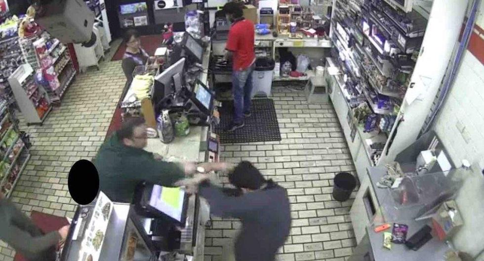 It's not clear where the first cashier went, as he didn't appear in the surveillance video after he was struck in the head.