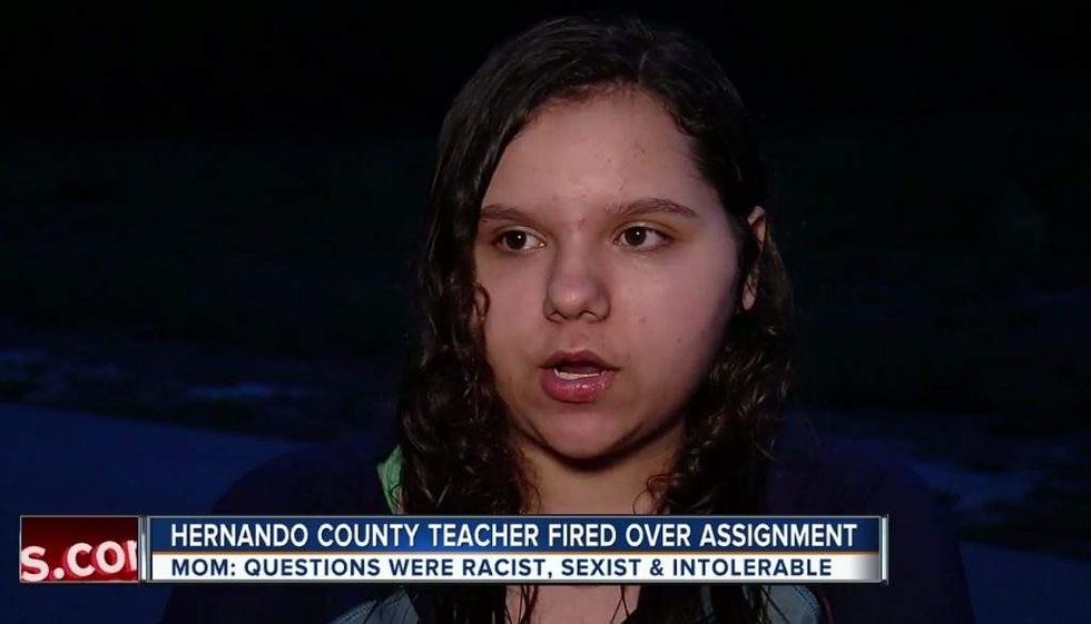 A Florida middle school teacher was fired after giving a survey to her sixth-graders that asked for their reactions to statements such as, "A friend invites you to go to a gay bar." (Image source: WTSP-TV video screen cap)