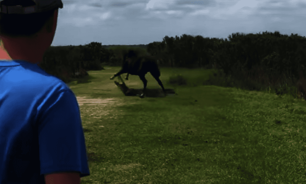A wild horse and an alligator have a brief moment of conflict at Paynes Prairie Preserve in Florida (Image source: YouTube)