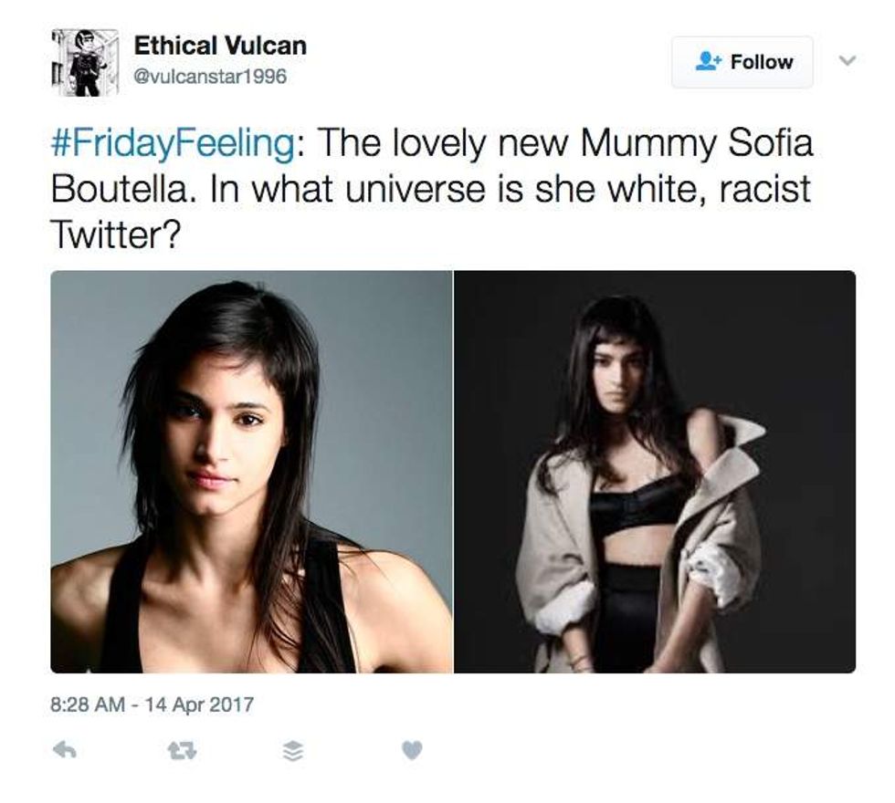 Yup, the actress who plays the mummy — Sofia Boutella — hails from Algeria, a north African nation that's 99% Arab and Muslim.