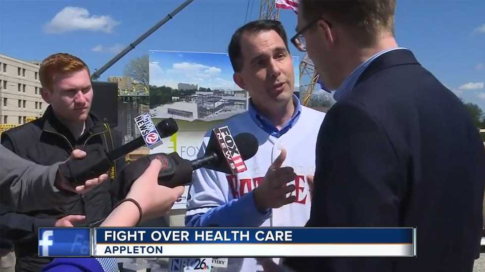 Wisconsin Gov. Scott Walker (R) was ambushed by a local Democratic Party official on Friday at a Minor League Baseball tourism event in Appleton. The official demanded Walker explain his position on the American Health Care Act, and a heated argument ensued.