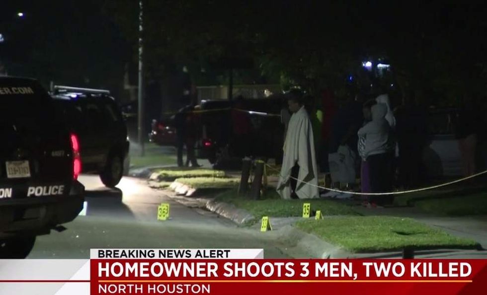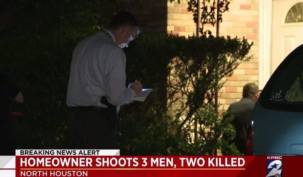 Three gunmen opened fire on a Houston homeowner standing in his yard early Saturday morning. But the homeowner has a concealed-handgun license — and as it turns out, is quite a good shot. (Image source: KPRC-TV video screenshot)