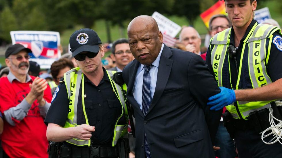 "Our country needs you now more than ever before," Lewis said. "When you see something that is not right, not fair, not just, you have a moral obligation, a mandate to stand up, speak up and speak out."