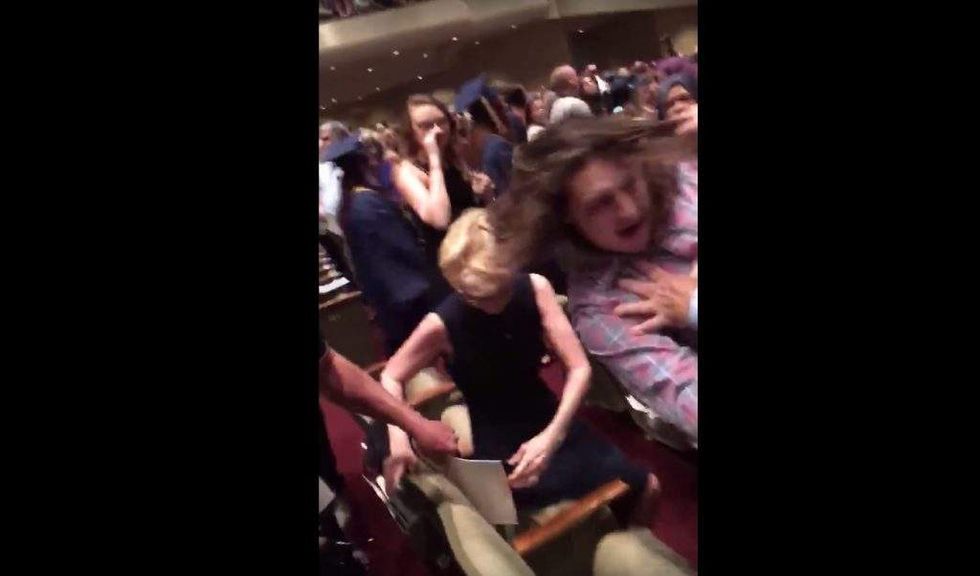 "It's graduation!" one onlooker is heard saying on the clip. "Lord, forgive me. Lord, forgive me."